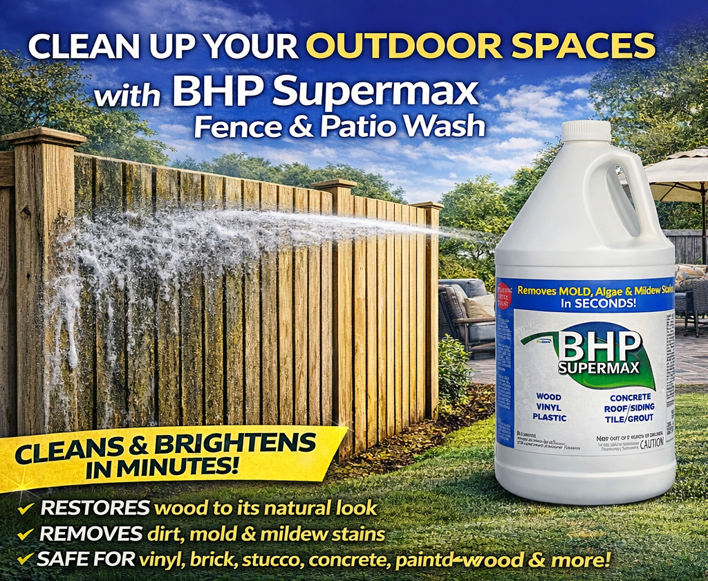 With our mold stain remover, Professional contractors and homeowners are guaranteed to save more time, money, and effort with BHP Supermax. Not all projects require the same strength or dilution, so we give you a concentrated formula. One gallon can make up to 4 gallons RTU product making the cost much less than the competition which only removes stains.